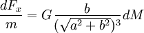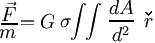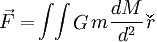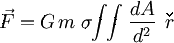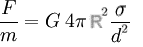 Para una esfera de radio R imaginemos sobre su superficie una concentración de masa en una capa de pequeño espesor. La densidad superficial σ, esto es la masa por unidad de superficie, es constante. Notemos que  G σ  tiene las dimensiones de una aceleración. A una distancia d del centro de la esfera, con d > R hay un cuerpo de masa m y dimensiones que consideradas despreciables con respecto al las de la esfera, por ejemplo ... nuestra manzana. La fuerza de atracción es: